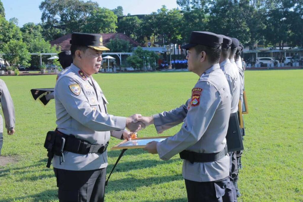 Kapolda NTB memimpin upacara Hari Kesadaran Nasional dan memberikan penghargaan kepada personel berprestasi dalam mendukung tugas kepolisian.