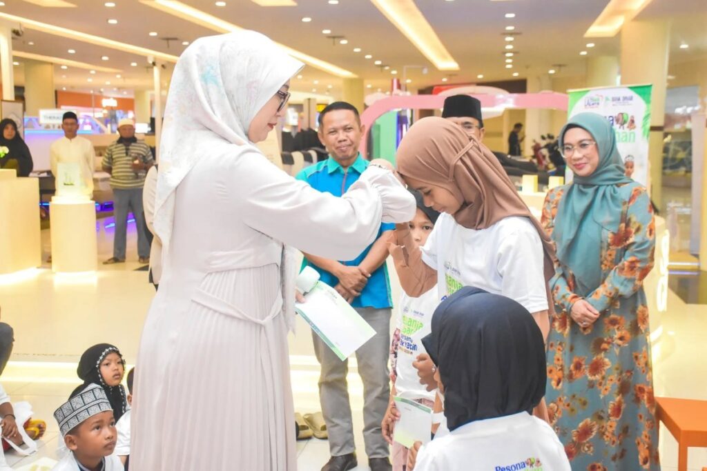 Bunda Hj. Sinta Agathia berpesan kepada anak yatim untuk bijak memanfaatkan uang belanja dalam rangka menyambut Lebaran.